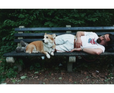 His official AKC name was "Penmorgan's Chelsea Dylan". He was named after Dylan Thomas, the famous Welsh poet, who lived for a time at the Chelsea Hotel just down the street from our NYC apartment. Dylan (the dog) spent most of his time guarding the front door, herding us and the neighbors, and watching John work at the computer. He went to tech rehearsals occasionally (Broadway, of course!) and preferred either an orchestra seat with a good view of the stage or a nice large space on top of the tech table.